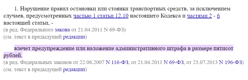 - Статья 12.19 определяет наказание за нарушение правил остановки и стоянки транспортных средств.