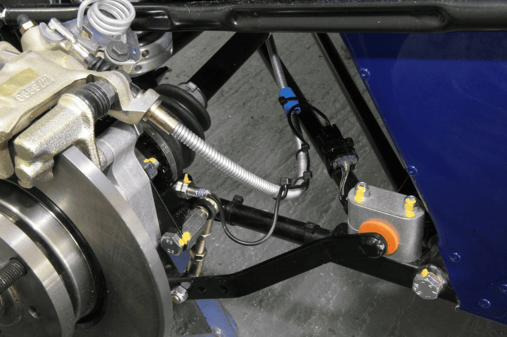 Гидроблок собран в металлическом корпусе, прикрепленном к кузову автомобиля на кронштейне. В нижней части блока расположен электрический привод насоса, в гидравлической системе предусмотрены демпферы для сглаживания толчков давления жидкости при низкой температуре окружающей среды. Контроллер гидроблока оснащен отдельным герметичным корпусом и колодкой для коммутации к бортовой сети автомобиля. В контроллере устанавливается процессор с заведомо избыточной производительностью для защиты от случайных сбоев. Как правило, процессор продублирован, а в электронной части предусмотрен контрольный третий процессор, который может использоваться для управления частью компонентов системы ABS.