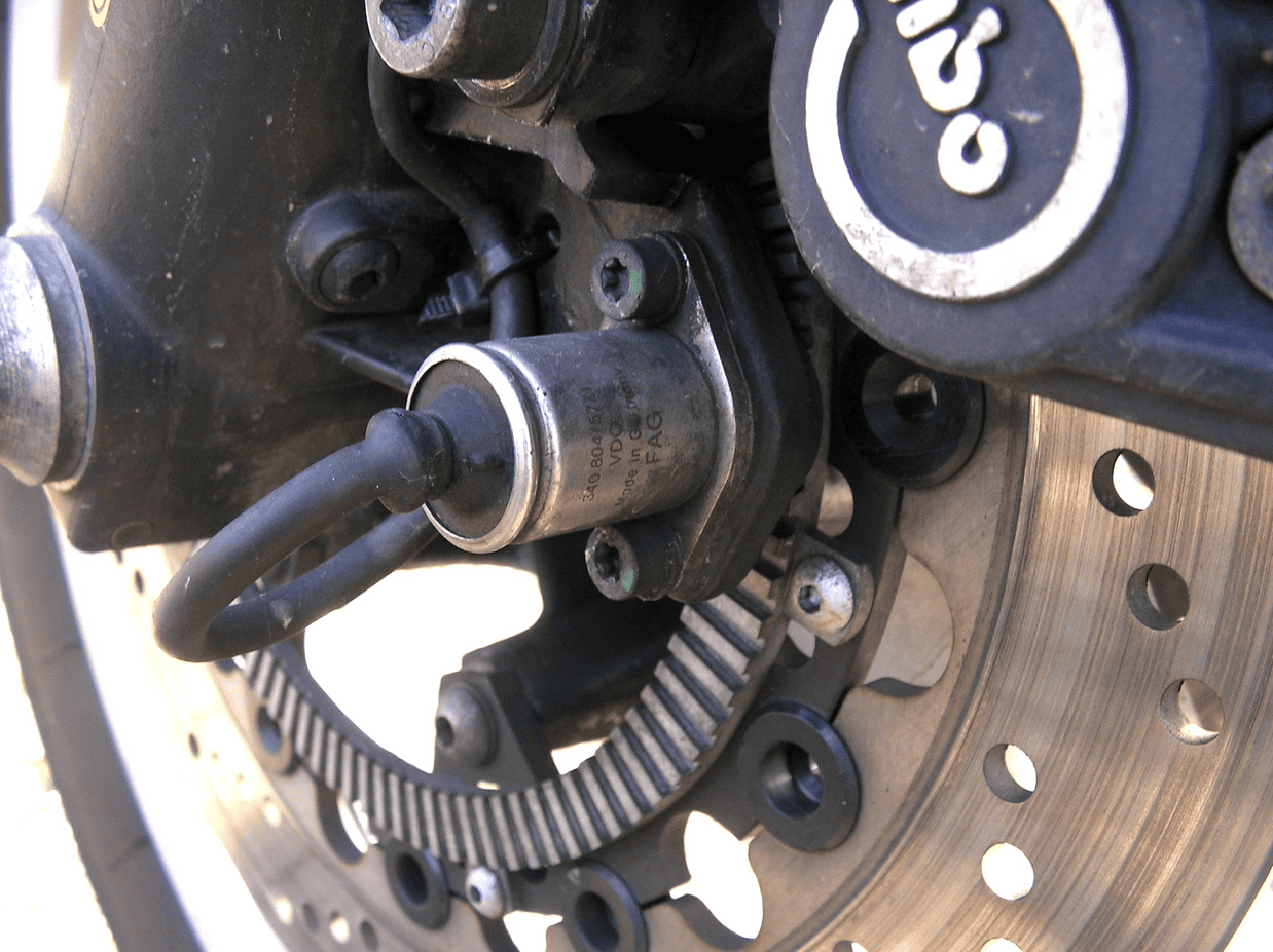 В ступицах колес установлены датчики вращения, конструкция сенсоров зависит от модели и даты производства автомобиля. Чаще всего используются съемные датчики, считывающие показания от вращающегося зубчатого венца. Встречаются интегрированные в ступицу датчики, задающим элементом является зубчатое металлическое кольцо ступичного подшипника. Датчики любого типа оснащены полюсными пластинами и постоянным магнитом, вокруг которых навита катушка. При вращении металлического элемента происходит пересечение полюсных пластин и магнита выступами, что приводит к генерации импульсов тока, которые учитываются блоком управления.