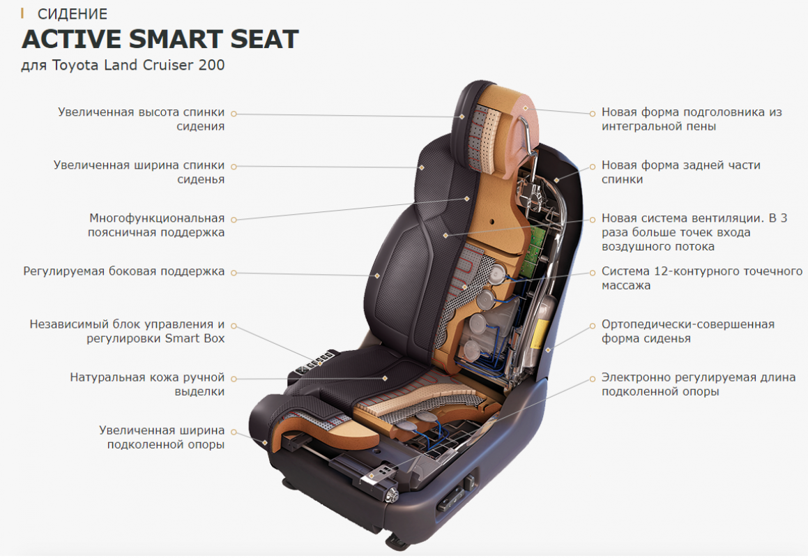 Передние кресла на бюджетных моделях имеют регулировку в двух направлениях, механизмы для изменения высоты установки или поясничного подпора предусматривается редко. Премиальный класс может оснащаться креслами с электрической настройкой и памятью, воздуховодами для подачи холодного воздуха, пневматическими подушками для массажа и другими опциями.