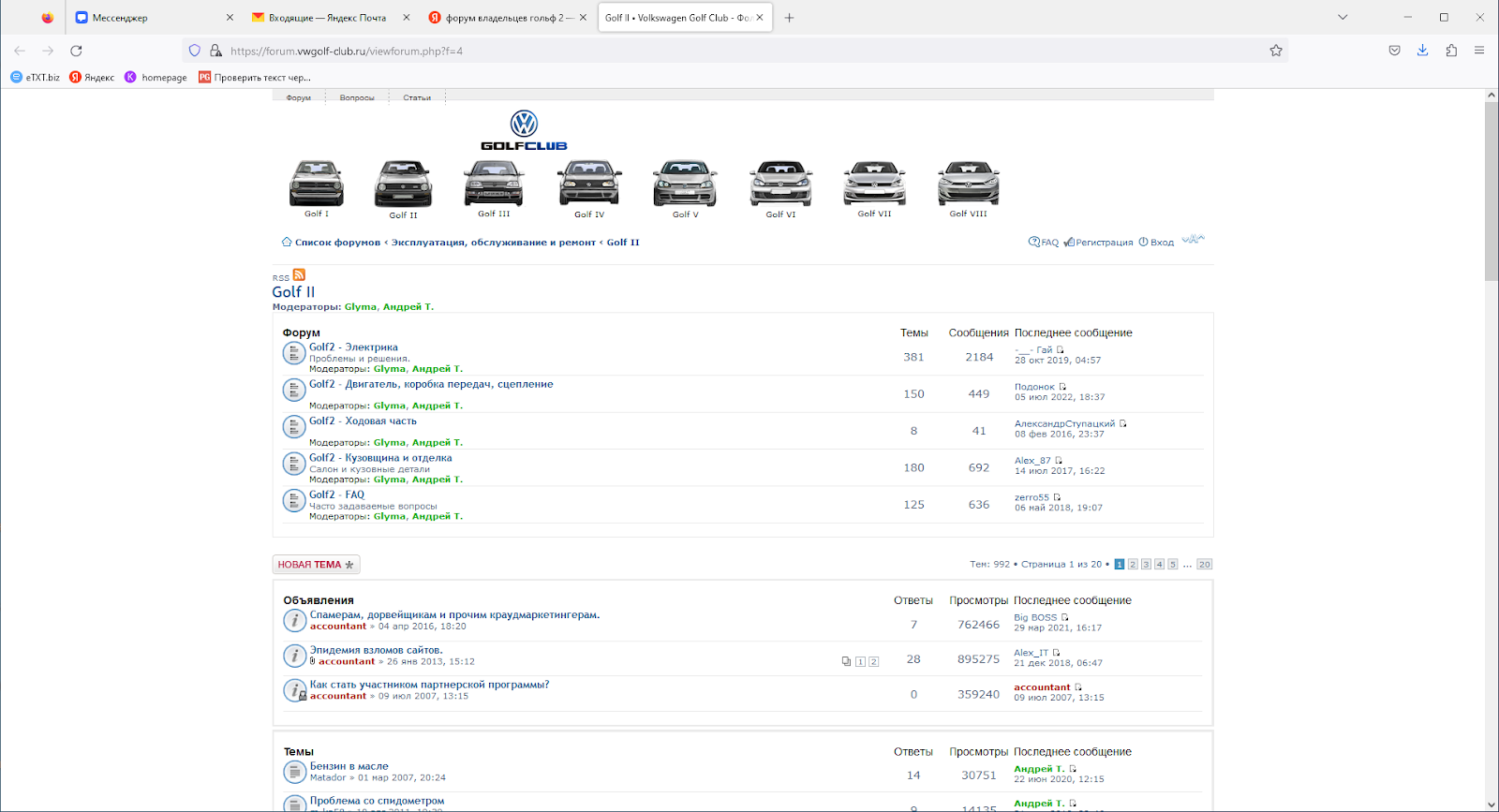 - форумах, посвященных обсуждению автомашин одной марки или модели – например, Volkswagen Golf или Passat;