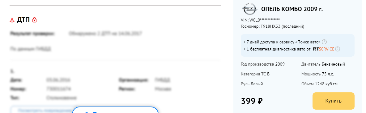 Вбиваете госномер и через 5 минут получаете отчет. Чтобы разблокировать информацию, платите 399 рублей и получаете всю подноготную интересуемого автомобиля.