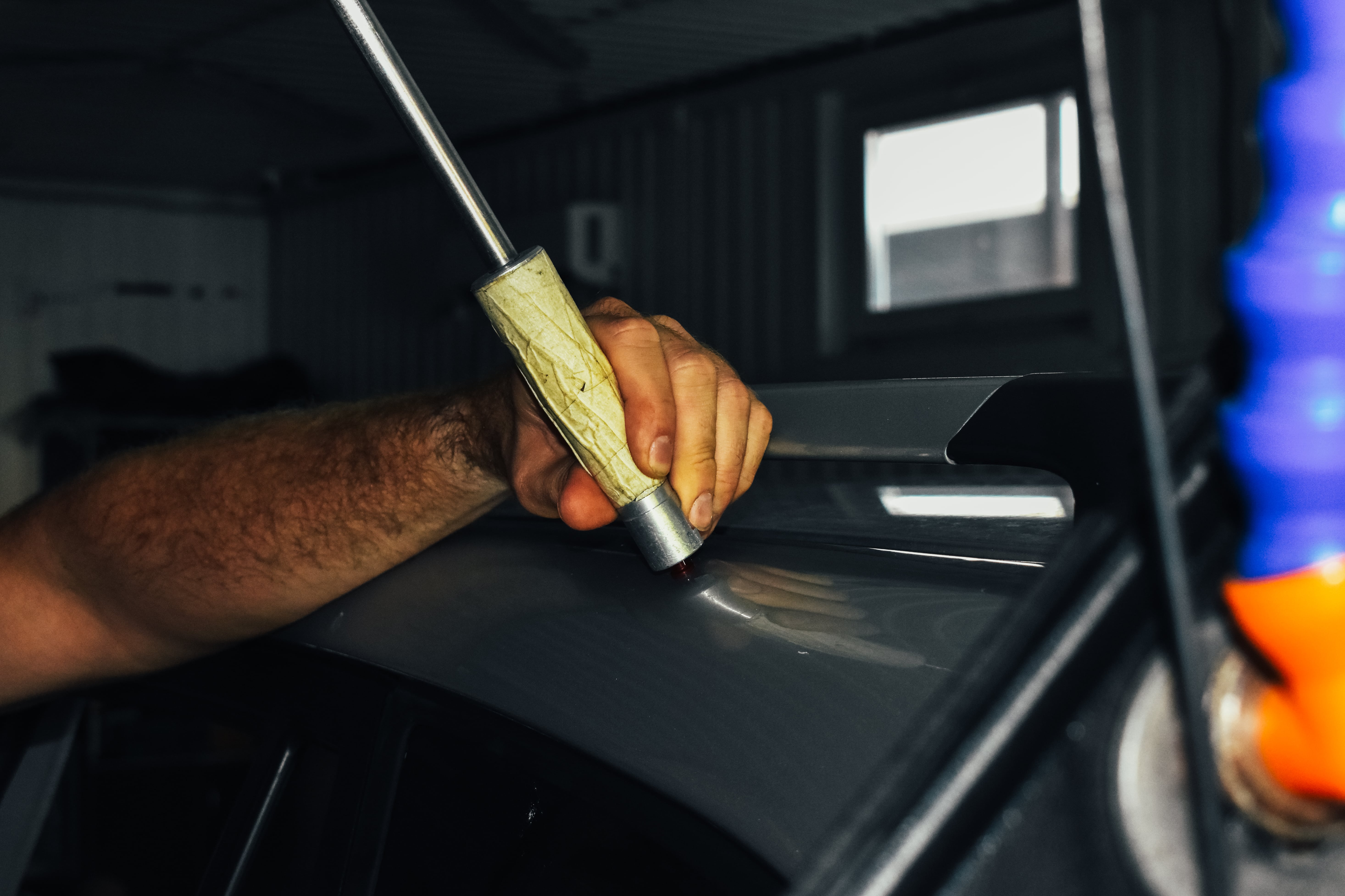 - Визуальный осмотр. По состоянию эмали и тому, как ложатся блики на лакокрасочное покрытие, опытные кузовщики в состоянии выявить наличие проблем. Но тут требуются тонкое чутьё и особые профессиональные навыки.